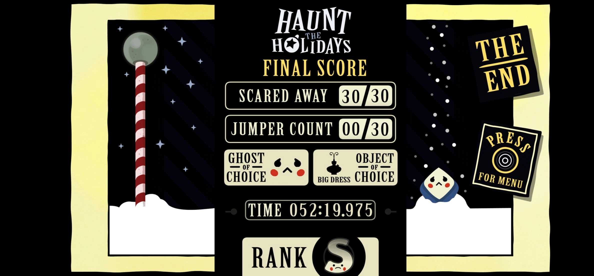 3、游戏当中,被连续惊吓过度的人可能会在绝望中跳窗并且死亡,游戏后的评分不只是看完成游戏所用时间,也要看吓死的数量,被吓死的人越多则评分越低,因此在游戏注意不要对同一个在短时间内连续惊吓。