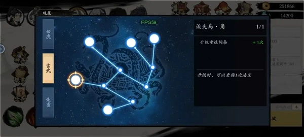 7,图内可以免费刷新一次选择法宝,观星点出玄武系法宝刷新后可以多一次,是每次升级都能换一次