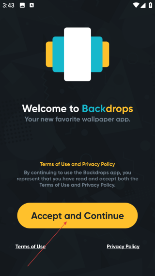 1、打开Backdrops壁纸应用,点击界面上的【箭头指标】按钮。