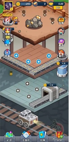 1. 游戏的场景设计充满了金矿小镇的特色,包括矿山、工厂、展览馆等。