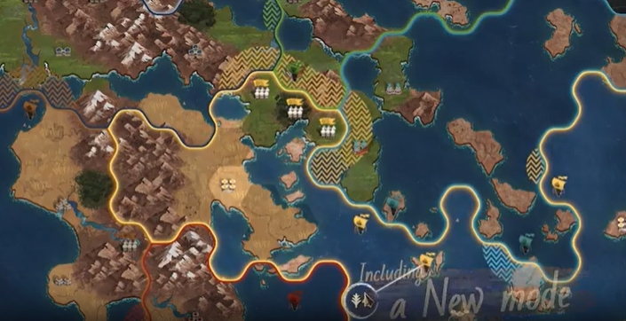 通过点击一个单位,你可以将其移动到另一个地块上,移动穿过每个地块都有相应的食物成本,这取决于地形和单位类型。陆军在海上和岛屿上移动是昂贵的,而海军在陆地上移动是昂贵的。
