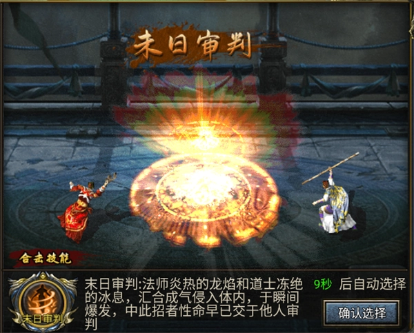 法师炎热的龙焰和道士冻绝的冰息,汇合成气侵入体内,于瞬间爆发,中此招者性命早已交于他人审判!