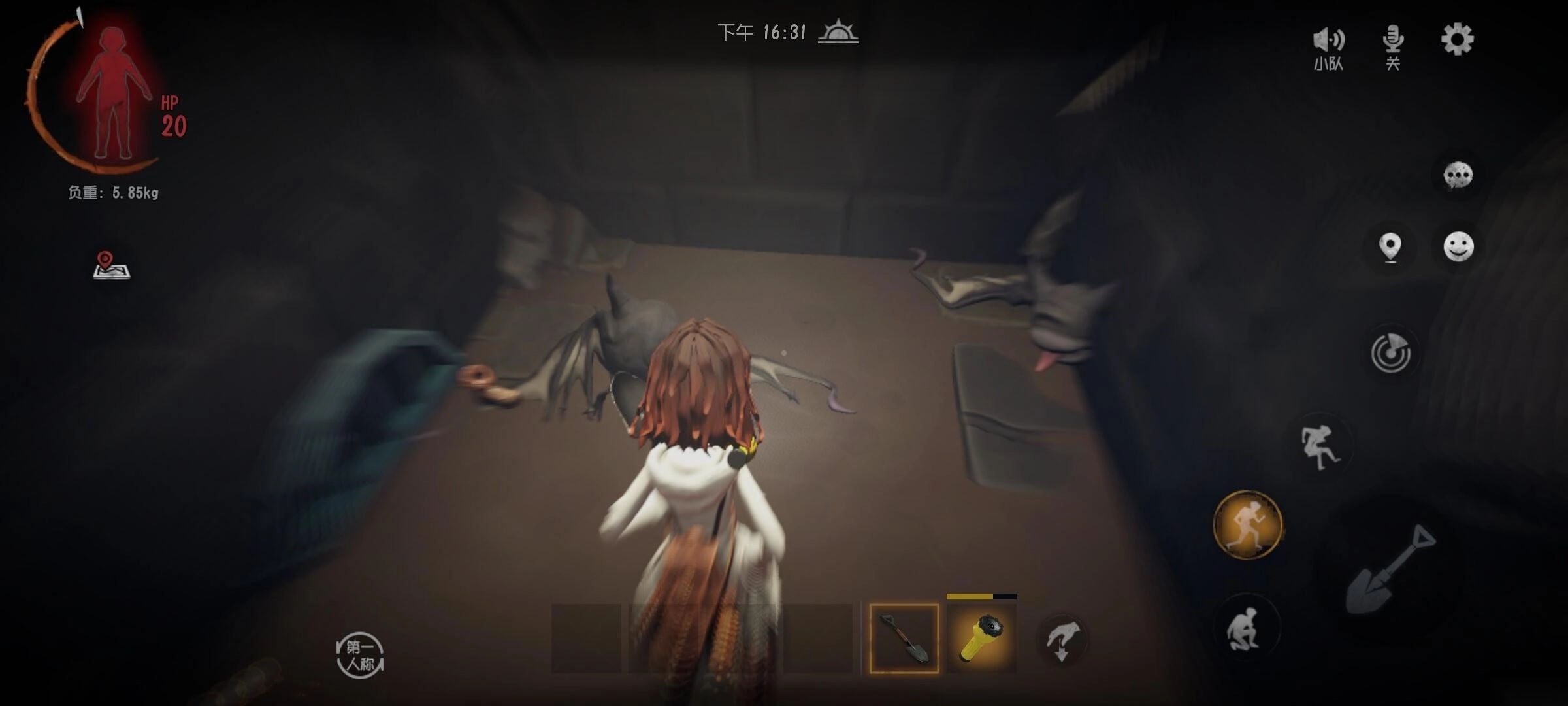 5.蜘蛛:会在道路口布设蜘蛛网,路过的玩家会因此减速,同时蜘蛛会感知到并前来抓捕你。需要注意的是,它速度极快,不要试图走进蜘蛛网来逃离追捕,因为它伤害很高且能一击毙命,可用铁铲、猎枪等武器将其消灭。