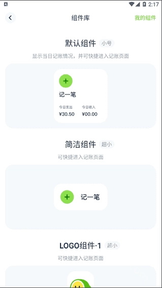 3、另外,在组件库中你还能对部分小组件进行编辑,也可以在桌面上添加组件来完成快速记账。