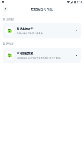 值得一提的是,你通过软件记录的每一笔收支数据,都会在启动或退出应用时自动完成备份,你可以随时在此处恢复记账数据。