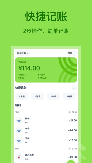 1、快速记账:用户只需输入金额并选择合适的分类,即可快速完成记账操作。