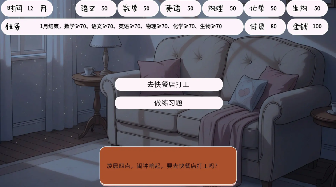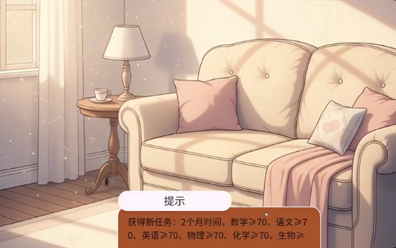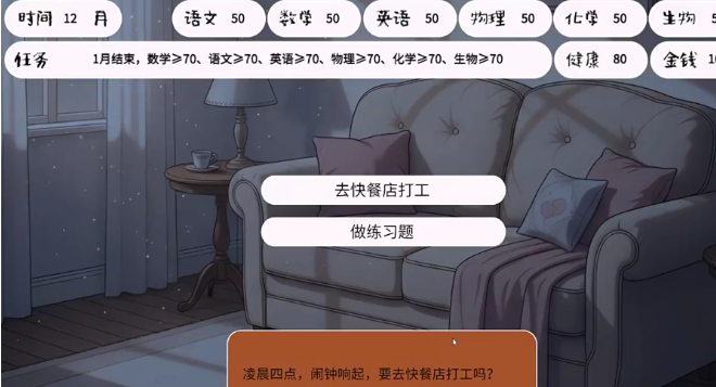 3、可直观看各个科目的成绩以及阶段任务,以及金钱,所以我们要谨慎选择,平衡学业与生活的压力
