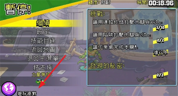 1、进入关卡中后,再去选择右下角的游玩派对。
