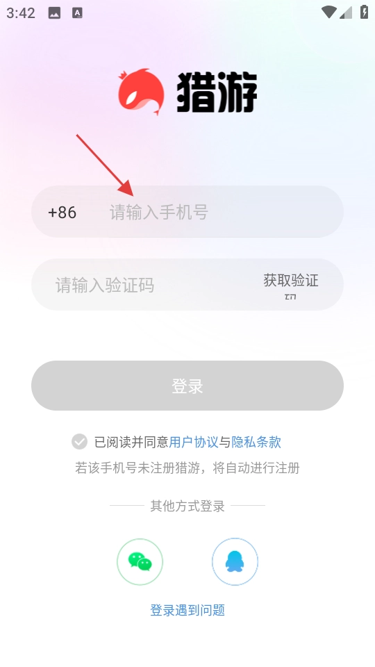 2、进入登录页面后,在标有“请输入手机号”的输入框中填写您的手机号码。