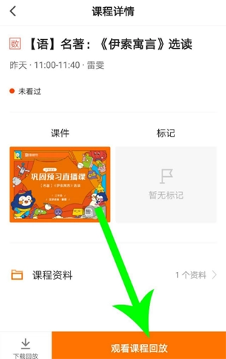 4、打开课程详情界面点击“观看课程回放”,随机可以观看直播课回放了。