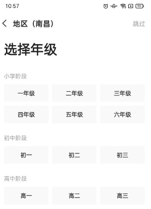 1、我们要打开猿辅导,选定所在的区域以及对应的年级。