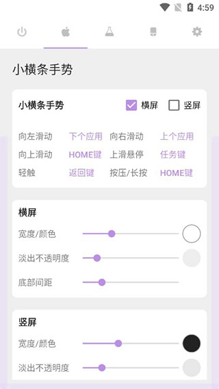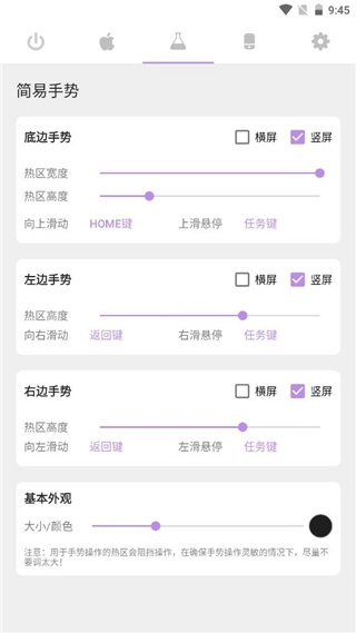 3、软件提供了多种手势操作,这里可以设置苹果手机最底下的小横条。