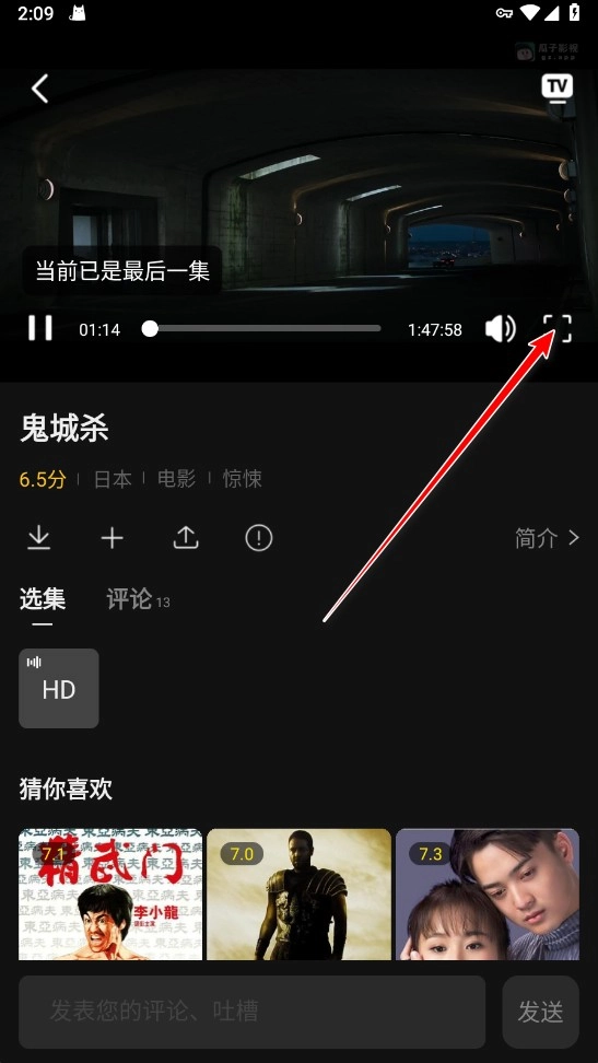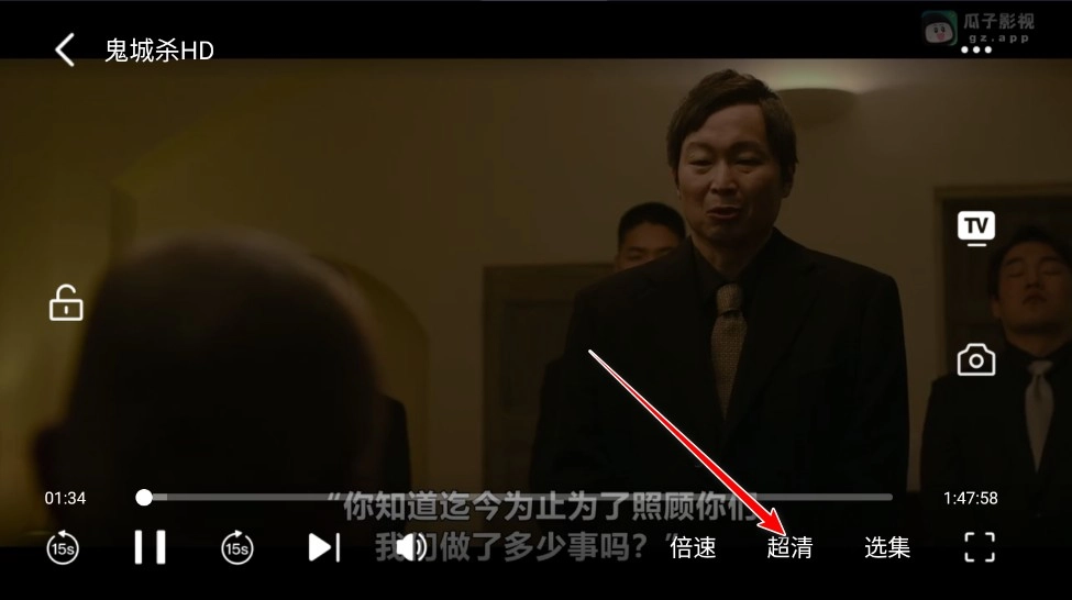 3. 当处于全屏模式时,我们点击清晰度选项,例如我当前选择的是超清。