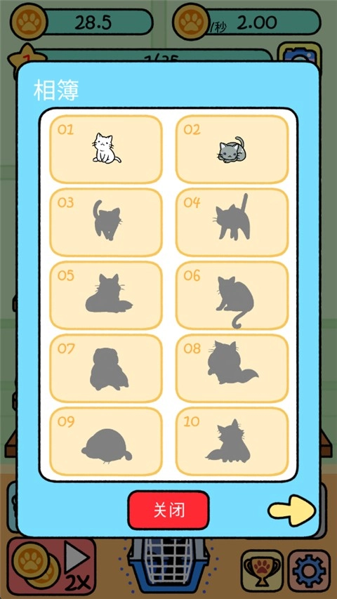 玩家只需点击开启猫箱就能得到猫咪。利用相同的猫咪可以合成新的猫品种,每解锁一只猫,它就会被记录到你的专辑里。