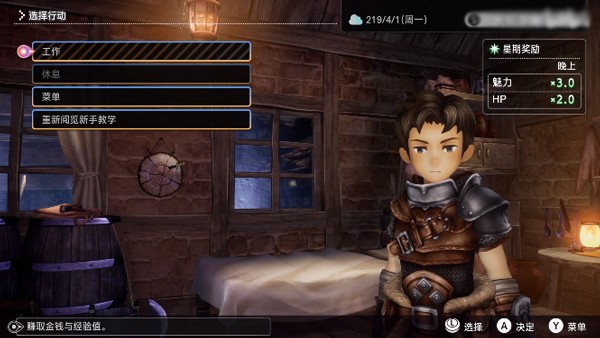 在家完成工作,可以获得金钱和经验值,其它的属性也会根据工作内容不同程度的成长。除了角色升级需要经验值之外,肌肉、硬质、敏捷、技术、魔力、加护、魅力等,每个参数也都有等级,需要获得各自的经验值积累升级。不同的参数,会影响角色的各项能力,因此,工作是提升角色能力的极佳方式。而工作除了需要消耗体力之外,还要留意心情,心情越好,工作成功率和效率越高。出现“excellent”,3倍报酬金额;出现“success”,1倍报酬金额;出现“fail”,只有0.1倍报酬金额。本作品中有超过20种的职业,以及100个以上与职业相关的工作,在职业和工作的丰富程度上挺不错的。这一套丰富的游戏内容,也算是游戏的优点之一。