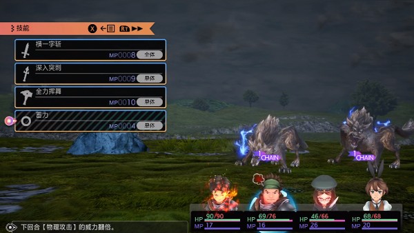 介绍中描述战斗形式为:“在有效利用职业和技能的传统回合制指令式战斗中,加入了和伙伴合作非常重要的独特系统。让敌人状态成为CHANGE,累积CHAIN,以CHANCE彻底给予大伤害吧!”