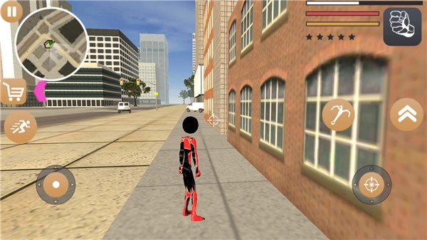 左侧控制移动与加速,右侧对应绳索和攻击(含跳跃功能),跳跃键独立设置;画面右上侧的武器切换界面,以及血量、经验值的显示均实时更新,状态信息一目了然。玩家可自由选择玩法,与其他帮派成员展开交火——击杀敌人能获取经验,连续击杀会累积星级,届时警察与周边角色将对你重点“关照”,发起猛烈攻势。而如何在激战中存活、并成功消灭对手,正是你需要完成的核心任务。