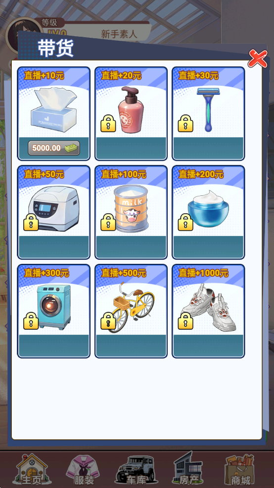 自由选择唱跳、美妆、瑜伽等赛道,升级设备打造人气直播间,从萌新蜕变为顶流主播;