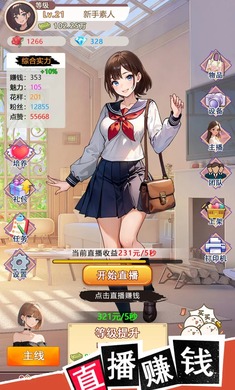 1、玩家在游戏中将化身女主播,个人魅力和花样越多,粉丝和点赞数量越高。