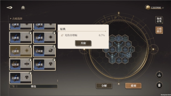 4、古痕在生成时会带有1条随机属性,玩家可以选择相同名字的古痕进行合并(最多2次),合并后的古痕可以通过反向拆解进行调整。