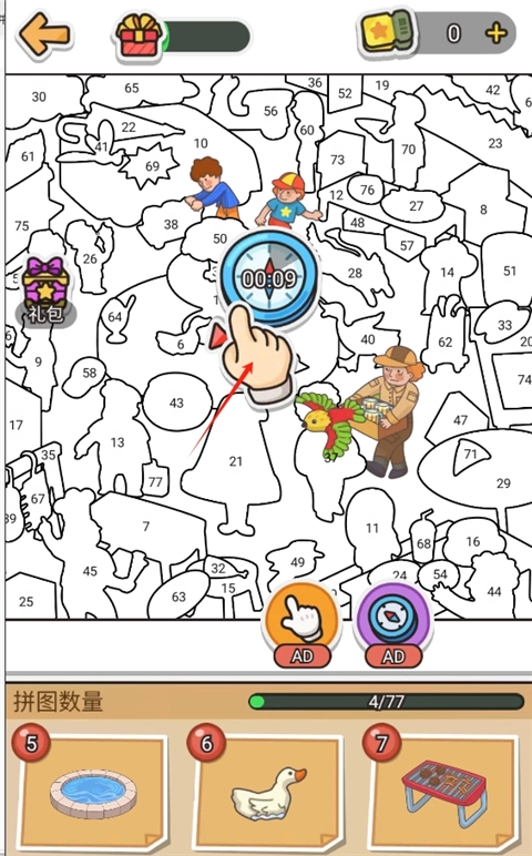 可以合理利用道具。指南针道具的性价比比提示手指高不少;要是手速足够快,指南针能在10秒内帮你搞定好几个贴纸。