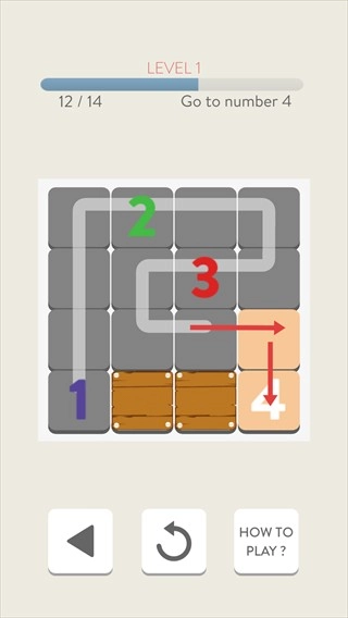 3、按照指引箭头的方向,依次把对应数字连接起来,完成路径填充;等进度到12/14后,接着连接到数字4,把剩余进度的填充做完。