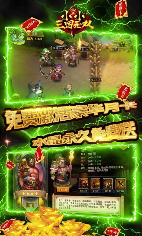 《小小三国无双》给各位玩家准备了丰厚大礼,下载送红晶、送金币、送经验、登录第一天送关羽魂石、送张辽魂石、登录第二天送vip1、送赵云魂石、送将魂石、送橙装......海量福利助各位玩家战力狂飙!