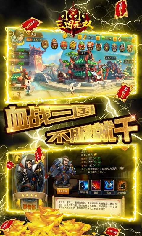 小小三国无双属于一款以三国策略为主题的游戏,里面的武将角色是 Q 版的,可以自由收集并培养。在小小三国无双这个游戏里,融合了卡牌、养成、塔防、战略等众多元素,为您打造出在掌上就能玩的超爽三国策略战场。像阵容的搭配、城防的建设、资源的掠夺、跨服的 PK 等,都真实地再现了三国沙场那种烽火不断的情景。赶紧来下载小小三国无双体验一下吧!