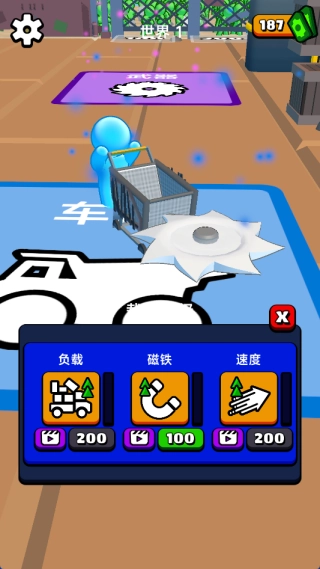 玩家在击退僵尸时,能自动拾取它们掉落的资源。回到基地后,可进入车库界面,用这些资源对战车的各项属性进行永久性强化。