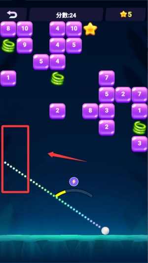 1. 核心目标是发射弹珠,把所有砖块都消除掉。玩家要通过滑动屏幕来调整弹珠的发射方向,松开手指后,弹珠就会沿着设定的轨迹飞出去,利用弹珠的反弹特性多次击中砖块,直到画面中的砖块全部清空,便可进入下一关。