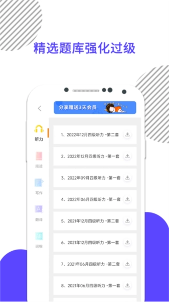 无论是听力的打磨、阅读的进阶,还是写作的提升,它都能为你提供有力的支撑。快来这款软件体验全新的UI界面与便捷的学习感受,让英语四级真题伴随你踏上成功的征程!