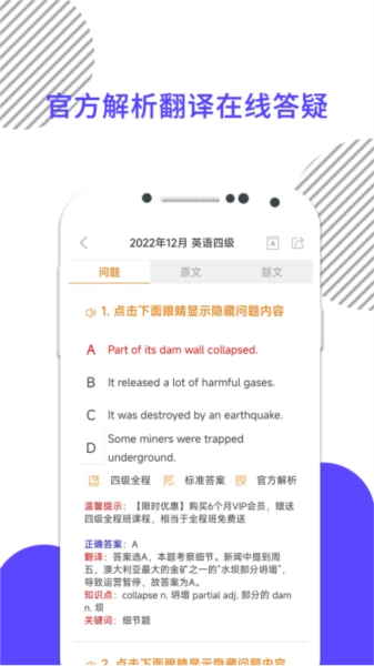 3、每项均提供真题题干、听力原文、听力音频和名师提供的权威解析。