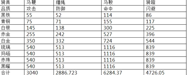 每件骑具每提升一次品质,都会为角色增加一定的附加属性。