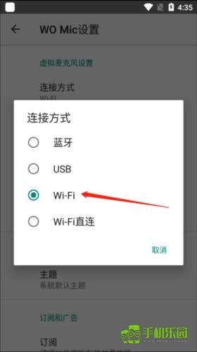 接下来点击连接方式,以WIFI作为传输;