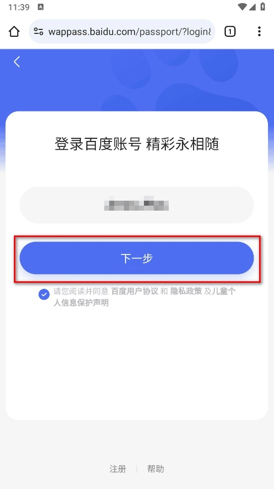 3、输入自己的账号,勾选同意相关协议,并点击下一步