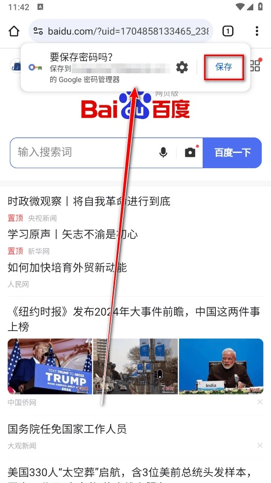 5、登录成功之后,上面会弹出提示,我们点击保存即可
