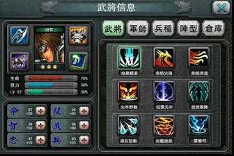 技能分为军师技和武将技两类。军师技的效果是:当玩家选定某位名将担任军师后,该军师会自动对我方与敌方军队的整体属性施加影响。武将技则是名将在战斗中使用的必杀技,这类技能在很大程度上决定着战局的胜负走向。不过,释放武将技需要消耗技能值,同时还有短暂的冷却时间,因此玩家需要制定合理的技能释放策略。