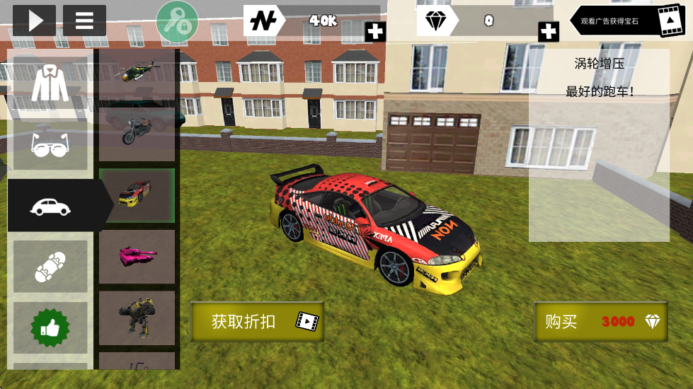 2、涡轮增压 —— 极速跑车代表,风驰电掣般穿梭城市,瞬间甩开追兵。