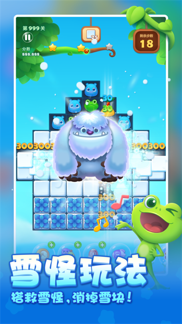 连续消除得分:一般消除一下30分,连消每次+30,然后60、90、120依次叠加;冰块里面消除一次1000,连消一次+1000,然后2000、3000、4000依次叠加;5+4组合一下给2000,每个被变化动物200分,每打掉一个普通的动物15分,冰块1500。