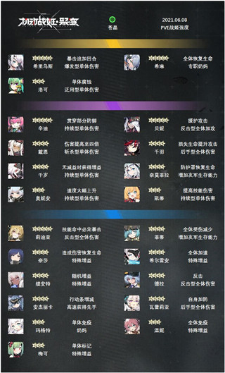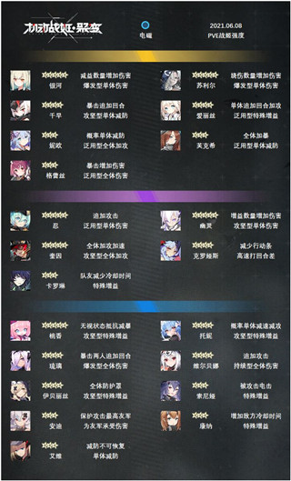 芙克希,二技能单体减防,三技能全体加爆,科技和数据链提供大量状态命中,足以面对大部分副本。