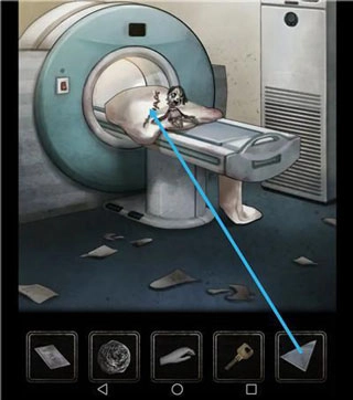 1、进入检查室后,点击玻璃罩内的机器,将木偶放入其中,此时外部的电脑屏幕上会显示出两个图案。