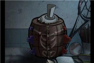 13、用痒痒挠和钢丝球在排风扇那里可以获取塑料小剑3。参照下图标注的两个位置,分别得到部件1和部件2,将这两个部件拼接起来就能制成拐杖。