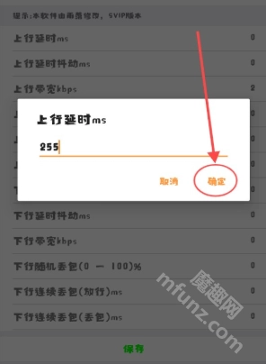 支持对上行/下行延迟(毫秒)、带宽(千比特每秒)、随机丢包率(百分比)等参数进行调整