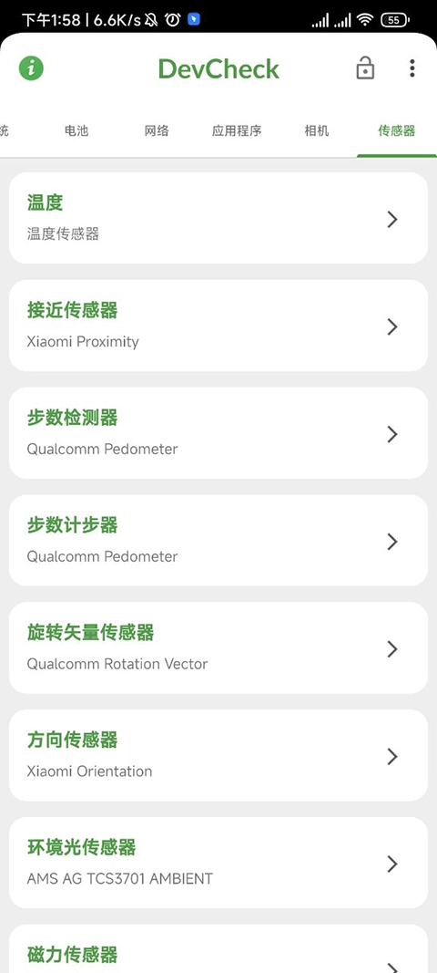 当然,DevCheck的功能不止于此,它还拥有强大的传感器检测能力。