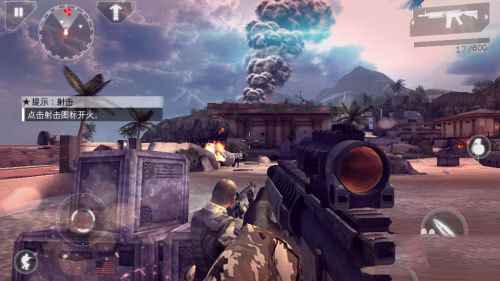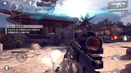 4、开火射击:说实话,现代战争4一开场就让玩家立马进入战火纷飞,硝烟四起的战场环境有点让玩家目不暇接。我玩的时候还没有搞清楚如何快速移动就不得不跟随战友去攻击敌人,因为不会使用掩体一直被敌人打中。