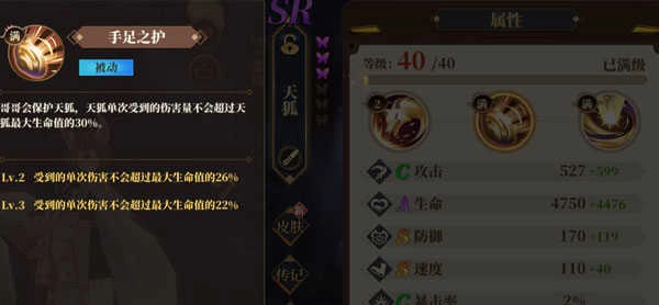 天狐锁血机制:所谓锁血,指的是单次承受的伤害存在上限,不会突破这个固定数值。天狐的2技能“手足之护”就具备这样的效果——它能让天狐单次受到的伤害不超过自身当前血量的30%。举例来说,若我方天狐当前血量为10000,即便BOSS的攻击伤害再高,单次也只能对天狐造成3000点伤害。需要注意的是,这个技能是可以升级的。