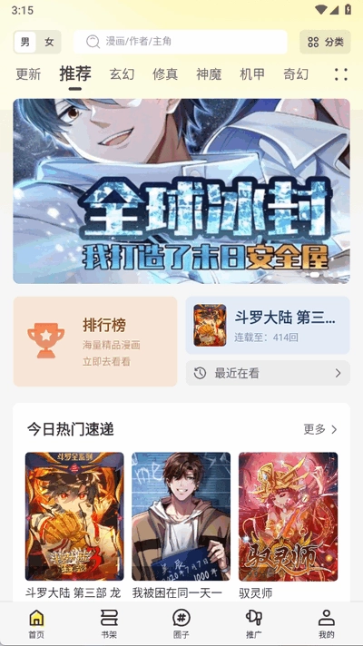 2、搜索漫画:在软件内搜索感兴趣的漫画,或通过分类浏览查找。