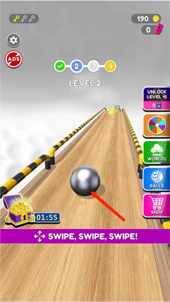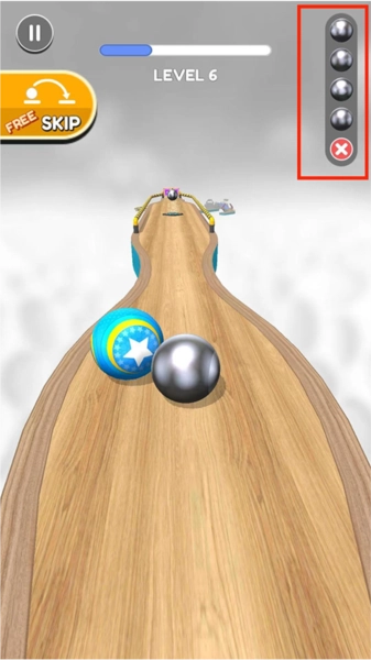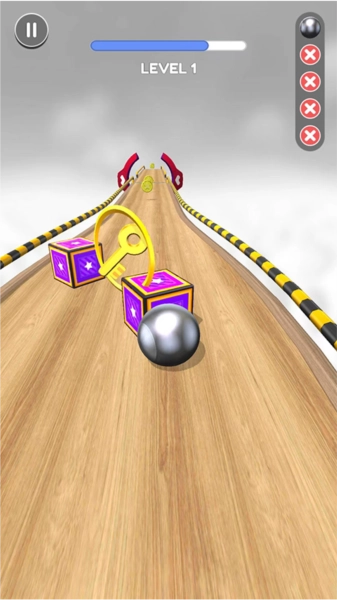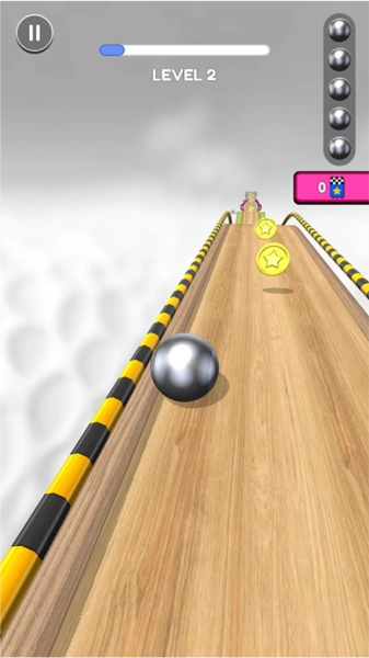 玩家可以通过滑动屏幕来操控球体的移动,滑动的速度会直接影响球的前进速度。当向左滑动时,球会朝着左前方滚动;向右滑动时,球则会向右前方滚动。当通道两侧没有围栏或者遇到障碍物时,玩家需要及时减速,以防球体掉出通道,从而浪费游戏机会。