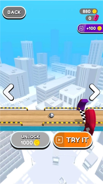 通关获得的金币奖励可以用来解锁新的皮肤与道具,其中有一部分皮肤带有独特的滚动特效。合理运用道具能够降低关卡的挑战难度,像临时加速或者护盾这类道具就很实用。