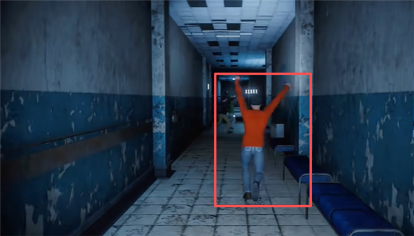 4、具体的玩法就是在这个建筑里面探索,撞到这种红红的东西,就是怪物,我们就尖叫逃跑。